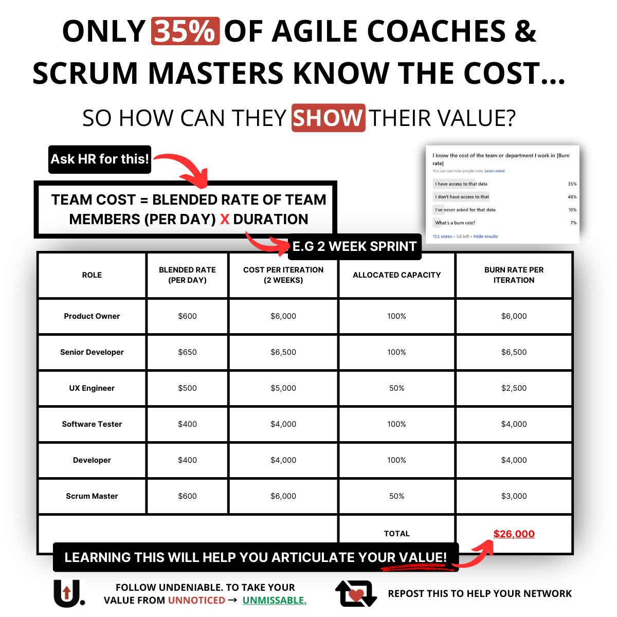 E.g. Product Owner = $600 per day X 10 days (2 week sprint)